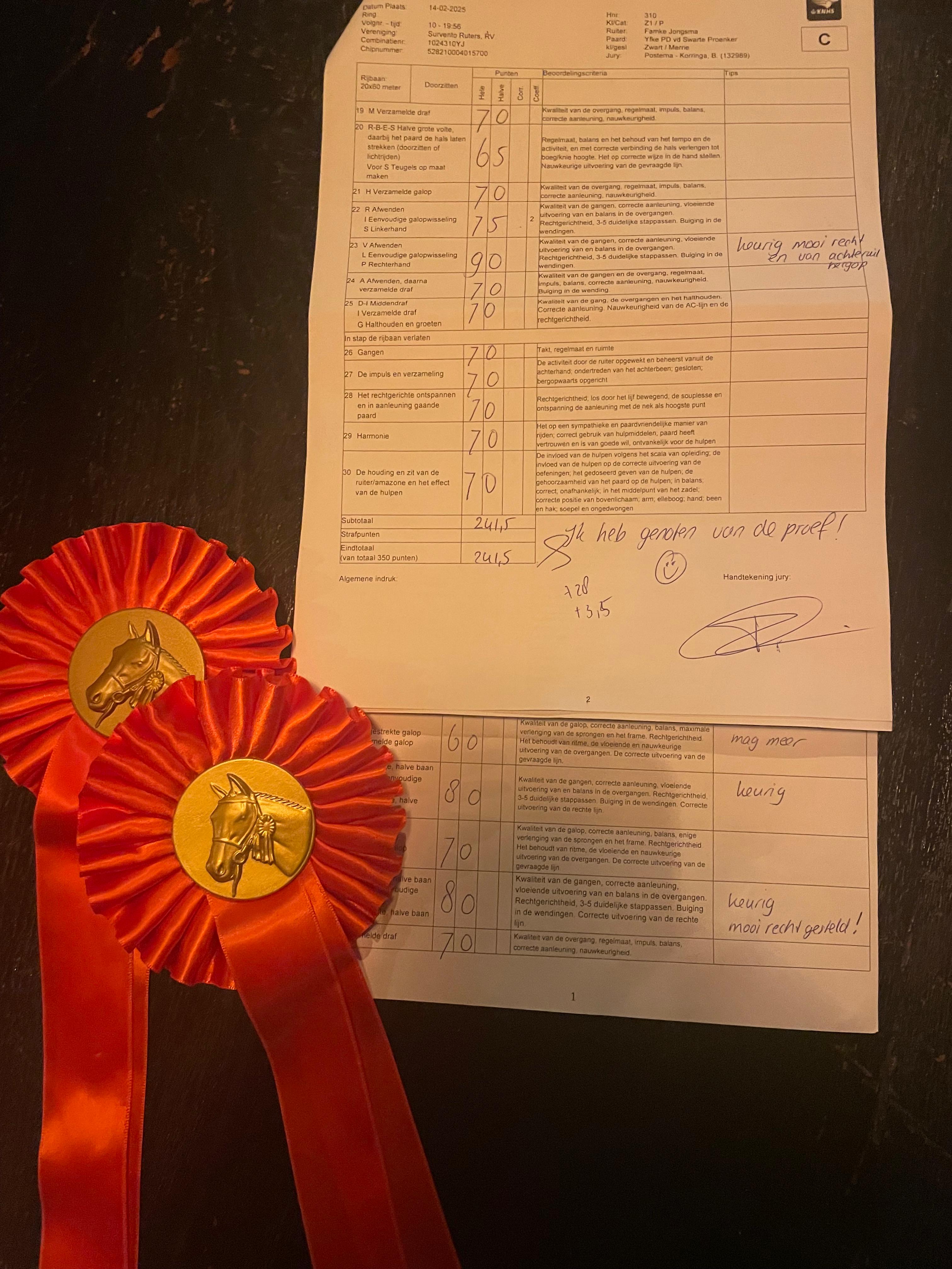 2025-02-21 Yfke PD vd Swarte Proenker is ruimschoots Sport, ze behaald weer mooie scores van 64% en 66,1% en een 🥇en 🥈prijs!